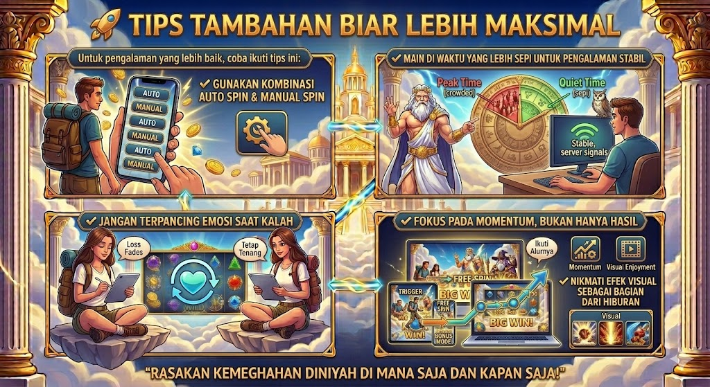 Walaupun hasil tetap bergantung pada sistem permainan, ada beberapa tips yang bisa bikin pengalaman bermain lebih optimal: