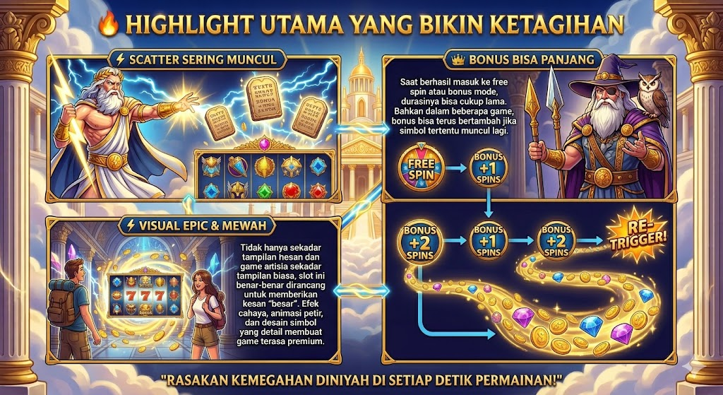 Setiap putaran bukan hanya soal menang atau kalah, tetapi juga tentang merasakan kekuatan para dewa dalam dunia digital yang penuh kejutan. Jika kamu mencari slot dengan nuansa epik dan potensi besar, maka slot tema ini layak untuk dicoba.